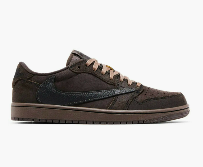 La AJ1 Low OG SP Travis Scott « Velvet Brown » revisite la silhouette iconique avec la signature créative de Travis Scott : tige en suède nubuck brun chocolat (Velvet Brown) combinée à des empiècements en cuir foncé et détails noirs pour un rendu riche et texturé. Le modèle affiche le Swoosh inversé caractéristique de la collaboration, ainsi que le logo « Cactus Jack » sur la languette et des emoji brodés au talon, témoins du style distinctif de l’artiste. La semelle Air‑Jordan traditionnelle assure maintien et confort, tandis que cette palette de tons terreux lui confère un look urbain haut de gamme, parfait pour les collectionneurs ou pour une tenue streetwear audacieuse.