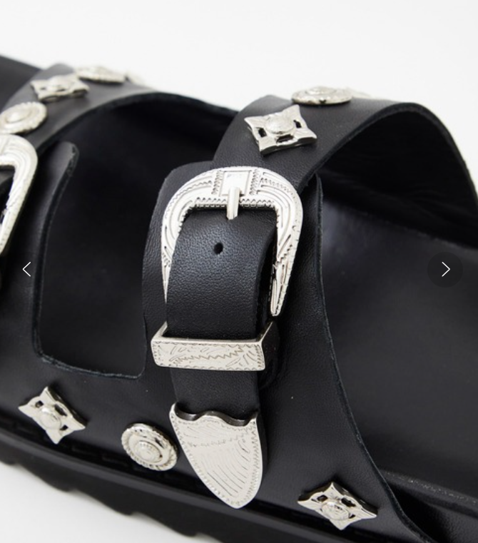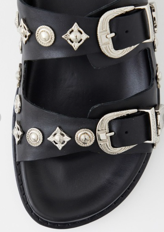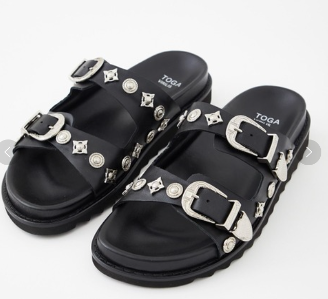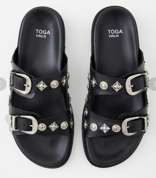 TOGA VIRILIS Sandale en cuir noir avec boucles et détails en métal