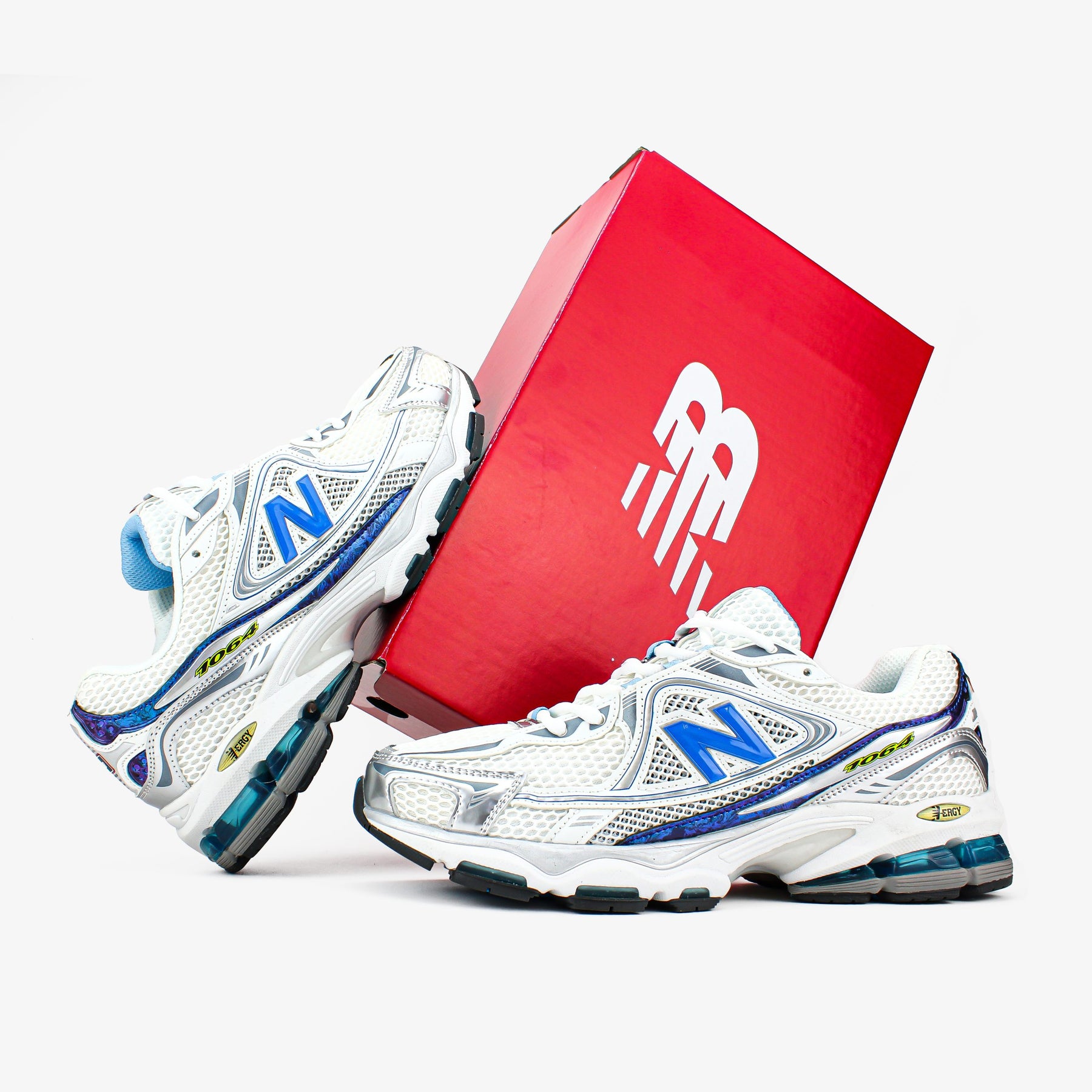 New Balance 1064 en coloris blanc, bleu et argent