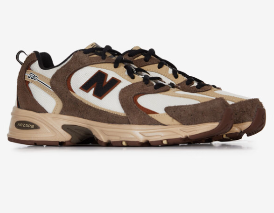 La New Balance 530 Marron/Beige, également connue sous les noms "Brown Tan", "Dark Mushroom" ou "Incense Linen", allie confort, performance et esthétique. Son coloris naturel, avec des tons chauds et terreux, apporte une touche élégante et polyvalente, facilement associable à divers styles, du streetwear au look plus décontracté. La silhouette classique de la 530 est enrichie par une combinaison de cuir et de mesh, assurant à la fois durabilité et confort. Grâce à la technologie ABZORB, elle offre un amorti optimal, réduisant les impacts lors des mouvements quotidiens. Cette paire de sneakers est idéale pour ceux qui cherchent une chaussure alliant style et fonctionnalité, pour un usage quotidien ou sportif.
