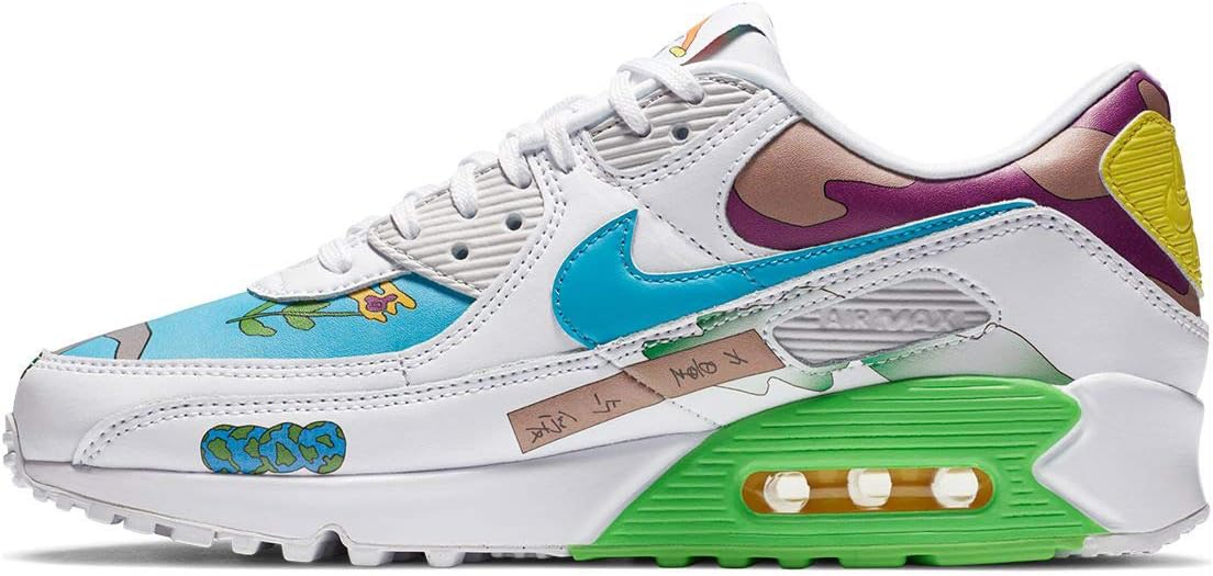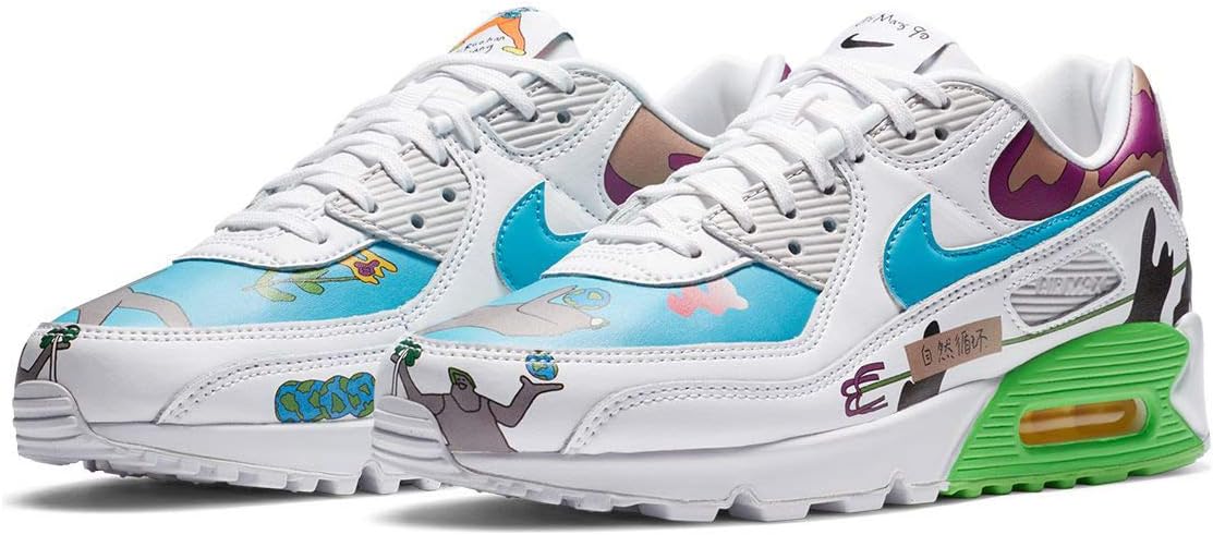 La Nike Air Max 90 Flyleather Ruohan Wang est une édition limitée sortie en 2020, alliant l'iconique silhouette de 1990 à des éléments de design modernes et responsables. Sa tige en Flyleather, un matériau innovant fabriqué à partir de cuir recyclé, combine durabilité et performance. Le design multicolore est signé par l'artiste Ruohan Wang, avec des illustrations asymétriques aux couleurs vives, notamment des touches de bleu ciel pour le Swoosh, de jaune vif sur le talon et de vert pomme autour de l’unité Air visible.Cette sneaker conserve le célèbre amorti Air Max, offrant un confort supérieur tout en conservant une esthétique unique et créative. L'édition Ruohan Wang est un modèle parfait pour ceux qui recherchent une chaussure à la fois écologique, artistique et performante, marquant un nouveau chapitre dans l’histoire des collaborations Nike.