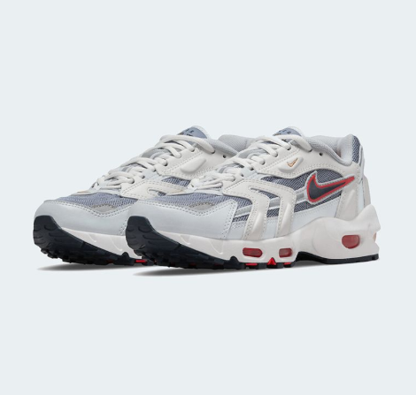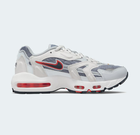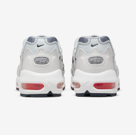 La Nike Air Max 96 II QS "Blackened Blue" présente un design rétro inspiré des modèles running des années 90. Elle combine une tige en cuir blanc cassé avec des superpositions en denim bleu foncé (« Blackened Blue ») et des accents de couleurs vives comme le rouge (« Gym Red »), ajoutant une touche dynamique au look vintage. La chaussure est équipée d'unités Air visibles au talon et à l'avant-pied pour un amorti optimal et une absorption des chocs efficace. Ce modèle allie confort moderne et esthétique rétro, offrant un style polyvalent et affirmé pour un usage quotidien ou casual.