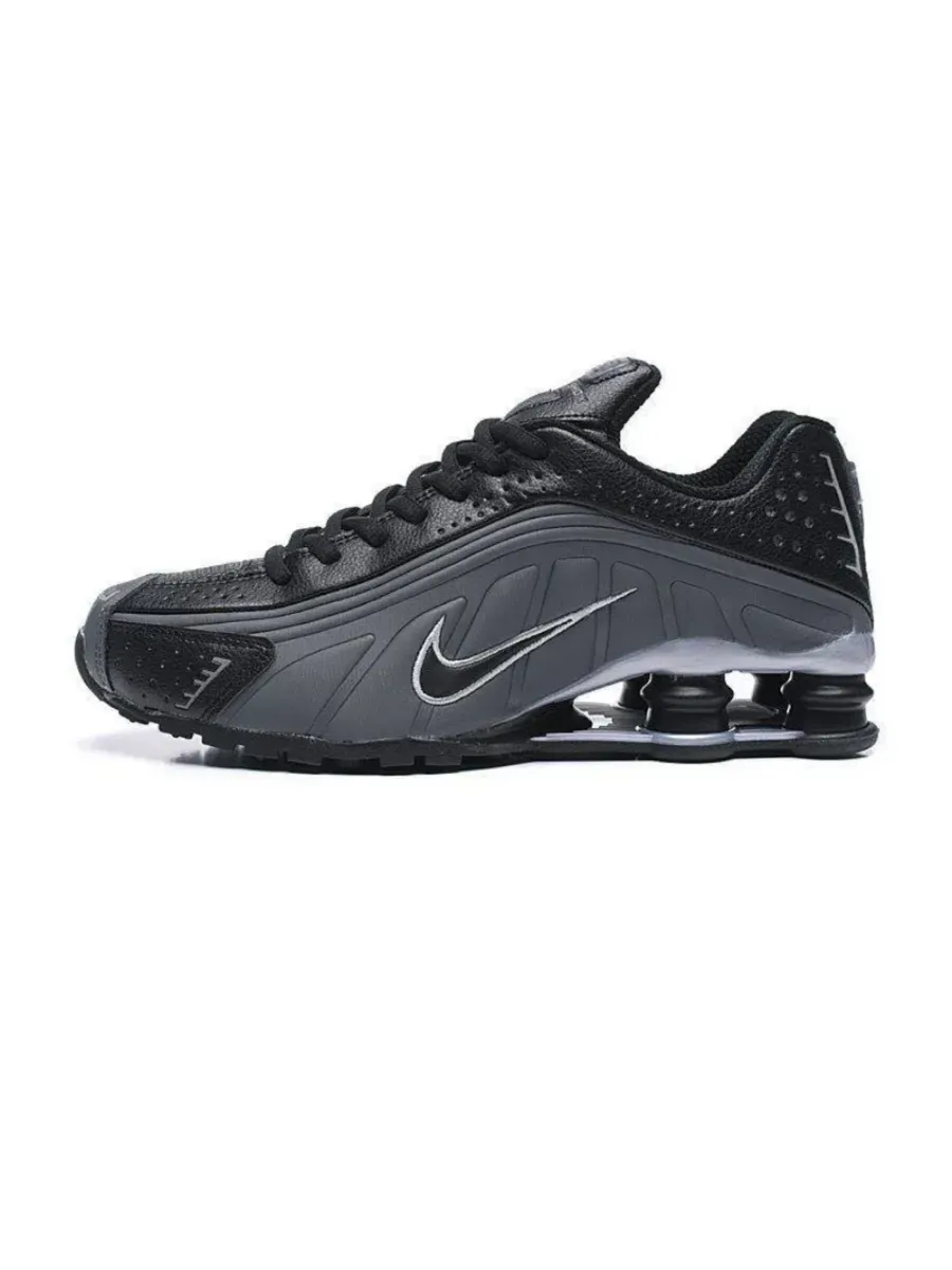 La Nike Shox R4 pour homme associe un style rétro‑futuriste des années 2000 à une construction moderne pensée pour le confort et l’usage quotidien. Sa tige combine synthétique et textile avec des perforations laser, garantissant à la fois durabilité, maintien et bonne ventilation. Sous le talon, les colonnes amortissantes « Shox » répartissent le poids du corps et absorbent les chocs, offrant un amorti réactif et un bon retour d’énergie à chaque pas. La semelle extérieure en caoutchouc, munie d’un motif de type « waffle modifié », assure une excellente adhérence sur différentes surfaces. Avec son design audacieux et ses lignes marquées, la Shox R4 gris‑noir représente un parfait équilibre entre confort, performance et esthétique streetwear — idéal pour ceux qui veulent une sneaker polyvalente pour la ville ou les déplacements quotidiens.