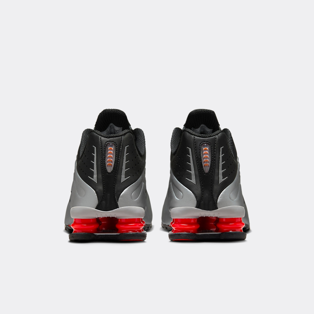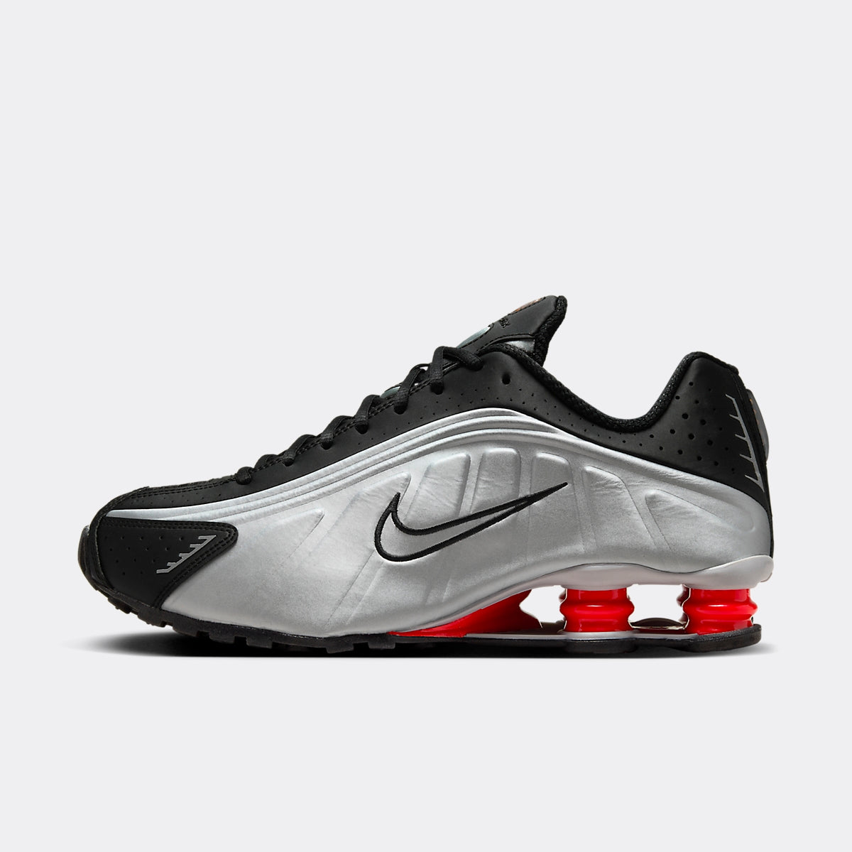 La Nike Shox R4 noire et argentée avec touches rouges adopte le design iconique des années 2000 avec une silhouette futuriste et urbaine. Sa tige en synthétique et textile allie résistance et confort, tandis que sa couleur principale — noir et argent métallique — est rehaussée par des accents rouges qui donnent du caractère à la chaussure. Les quatre colonnes amortissantes “Shox” sous le talon assurent un amorti réactif, absorbent les chocs et redistribuent l’énergie à chaque foulée pour un confort optimal en marche ou en ville. La semelle extérieure en caoutchouc, à motif gaufré modifié, assure une bonne adhérence et une traction fiable. En combinant héritage technologique, confort moderne et esthétique audacieuse, cette Shox R4 s’impose comme un choix parfait pour ceux qui veulent allier confort, performance et style streetwear affirmé.