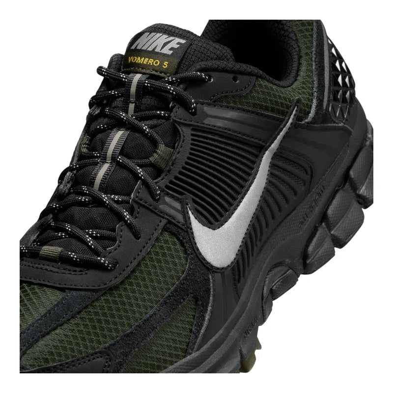 Ce modèle revisite la silhouette rétro‑running de la gamme Vomero, alliant esthétisme et confort. Il dispose d’une tige combinant mesh respirant et superpositions synthétiques ou en suède, offrant à la fois légèreté et maintien. La semelle intermédiaire intègre de la mousse Cushlon associée à des unités Zoom Air au talon et à l’avant‑pied pour un amorti fluide et dynamique. La semelle extérieure en caoutchouc assure une bonne traction sur chaussée. Le coloris « Black/Sequoia » présente une base noire profonde enrichie d’accents verts « Sequoia », lui conférant un look sobre mais distinctif, parfait pour un usage lifestyle ou urbain.