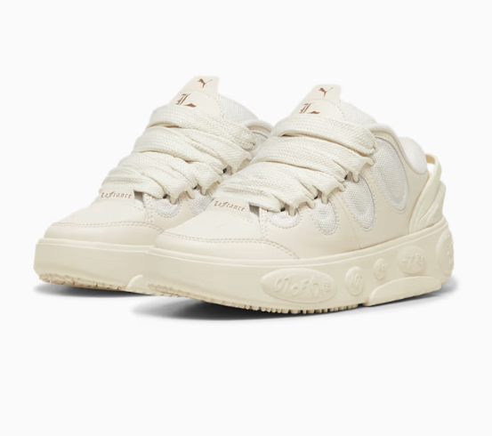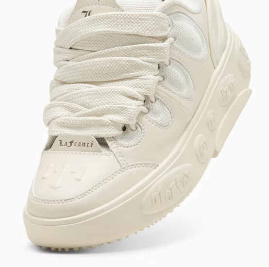 La Puma LaMelo Ball LaFrancé "Amour Moment" dans le coloris Alpine Snow est une sneaker audacieuse née de la collaboration entre LaMelo Ball et Puma. Son design imposant, inspiré des années Y2K, combine une semelle épaisse, des lacets larges, et une empeigne en cuir et textile. Elle se distingue par une silhouette volumineuse et une construction robuste, idéale pour un usage urbain ou un look streetwear affirmé. Avec son col rembourré et sa semelle cupsole enveloppante, cette chaussure offre confort et soutien, tout en apportant une touche unique à chaque pas. Un modèle parfait pour ceux qui cherchent à allier style audacieux, esprit basket et performance quotidienne.