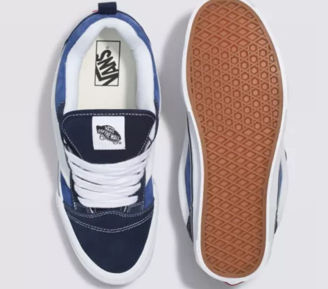 La Vans Knu Skool bleu marine et blanc combine un style rétro et une fonctionnalité moderne, avec une silhouette inspirée des années 90, qui a su se réinventer au fil des décennies. Ce modèle emblématique de la marque Vans offre une tige en toile bleue marine, associée à des accents blancs qui apportent une touche de fraîcheur. Sa construction solide, avec une semelle en caoutchouc et un motif à chevrons, assure une adhérence optimale, faisant de cette sneaker un choix parfait pour les skateurs comme pour ceux à la recherche d’une touche streetwear. Alliant confort, durabilité et design classique, la Knu Skool est un hommage au passé de Vans tout en restant ancrée dans l’ère contemporaine, idéale pour ceux qui veulent se démarquer tout en restant fidèles à l’esprit du style Vans.